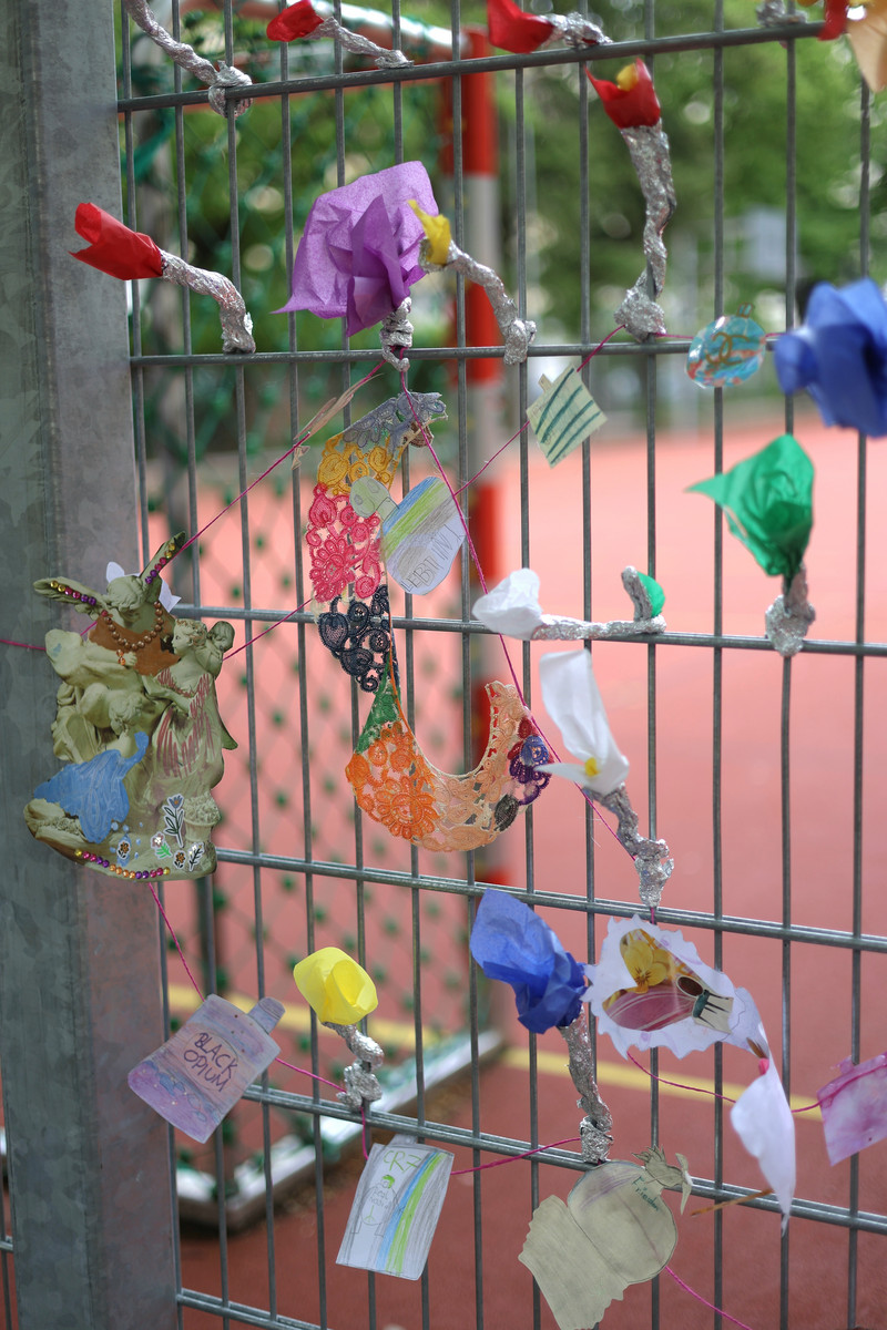 Nach einigen philosophischen Gesprächsrunden befassten sich die Schüler/innen vermehrt mit dem Thema Frieden und mit mit der Brücke von Natur zu Kunst. Sie gestalteten liebevoll sogenannte Friedensflacons als ein gemeinsam erarbeitetes Symbol für den Frieden, um dann Blumen sprechen – gezeichnet, gemalt oder auf andere Weise gestaltet.