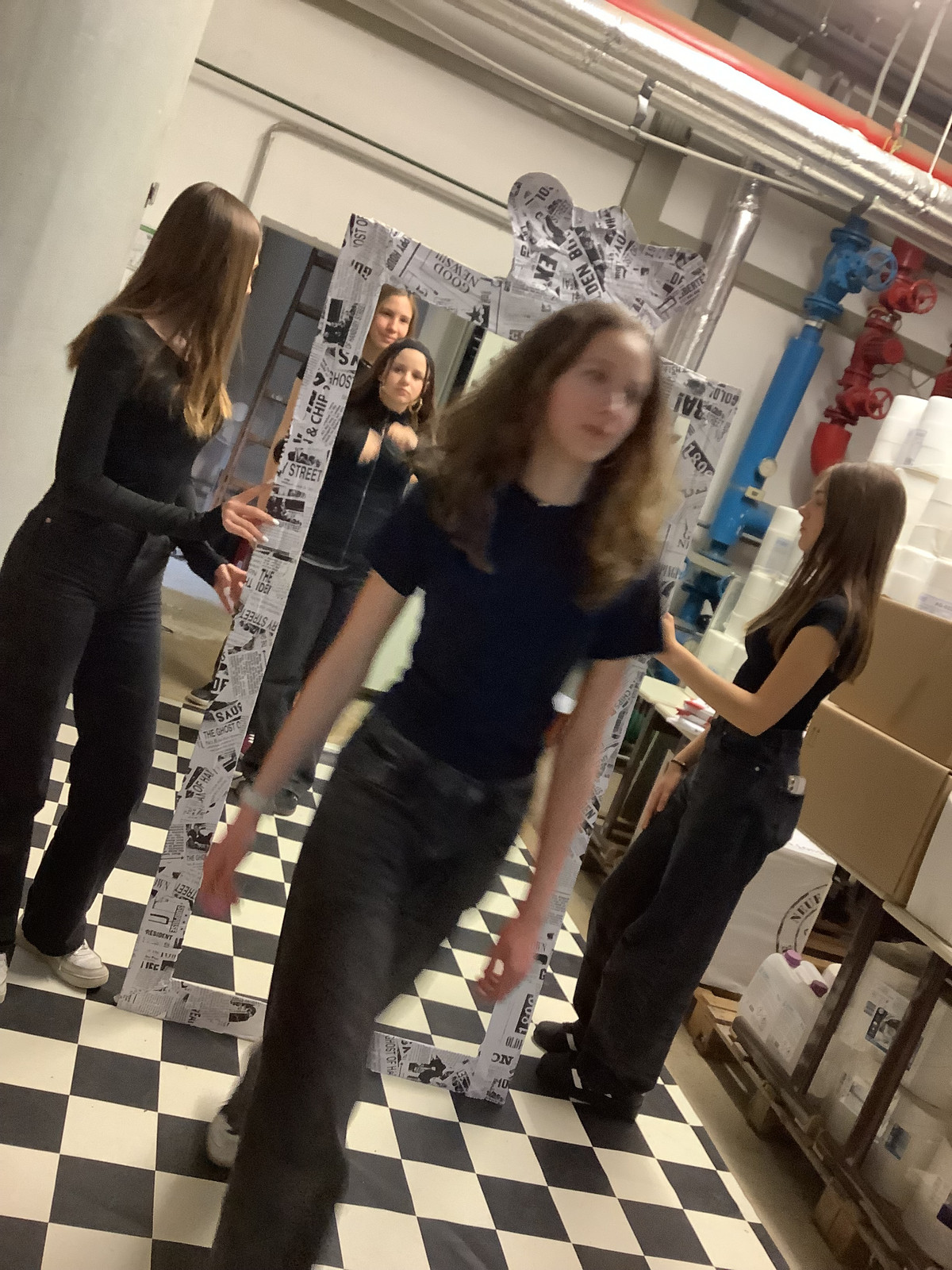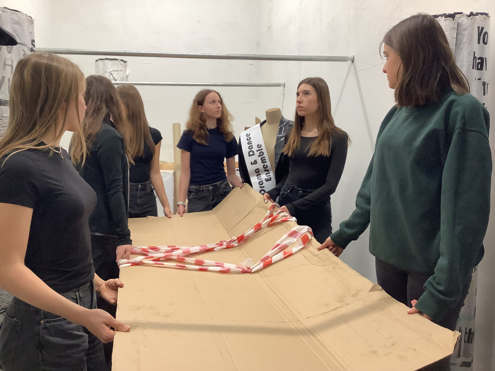 Dieses inspirierende Zitat diente als Ausgangspunkt für die Entwicklung des Konzepts. Im Kunstunterricht gestalteten Jugendliche dann Kunstwerke aus Pappe zu den 17 Nachhaltigkeitsziele und im Theater- und Tanzunterricht entwickelte eine andere Klasse szenische Skulpturen zu Themen wie „Be a VOICE!“, „The TIME is NOW!“, "RUNWAY der Menschlichkeit". Zum Leben erwachend begannen diese Textfragmente und -collagen zu einer Spielhandlung zu fügen und formten so getanzten Sprach-Szenarien. Auch Marionetten traten dann auf die Bühne und erzählten tanzend Geschichten vom friedlichen Miteinander.