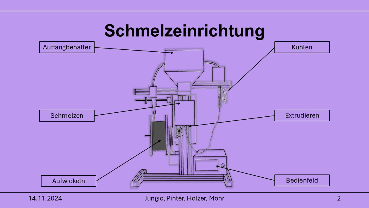 Die Diplomarbeit verfolgte das Ziel, aus fehlerhaften 3D-Druckteilen, 3D-Drucker-Filament zu schaffen. Dabei entwickelten die Schülerinnen und Schüler eine innovative Maschine, die sowohl das Umweltbewusstsein stärkt als auch für Unternehmen und Bildungseinrichtungen, wie die HTL Rennweg, einen praktischen Mehrwert bietet. Die Maschine verarbeitet Ausschussprodukte des 3D-Drucks: Sie zerkleinert, schmilzt und filtert diese und extrudiert anschließend daraus 3D-Drucker-Filament. Ein benutzerfreundliches Bedienfeld zeigt die Betriebstemperatur an, um die Bedienung einfach und sicher zu gestalten. Die Jugendlichen möchten mit diesem Projekt einen Beitrag zur Reduzierung des weltweiten Plastikverbrauchs leisten und zugleich Schulen und Unternehmen die Möglichkeit geben, Kosten für 3D-Druck-Materialien zu sparen. Das Projekt vereint innovative Technologie und Nachhaltigkeit und greift damit das Motto "Sternmomente – Europa kreativ" auf. Indem die Schüler/innen auf ein dringliches Umweltthema aufmerksam machen und Lösungen für Abfallvermeidung bieten, fördern sie Kreativität und Verantwortungsbewusstsein in Europa.