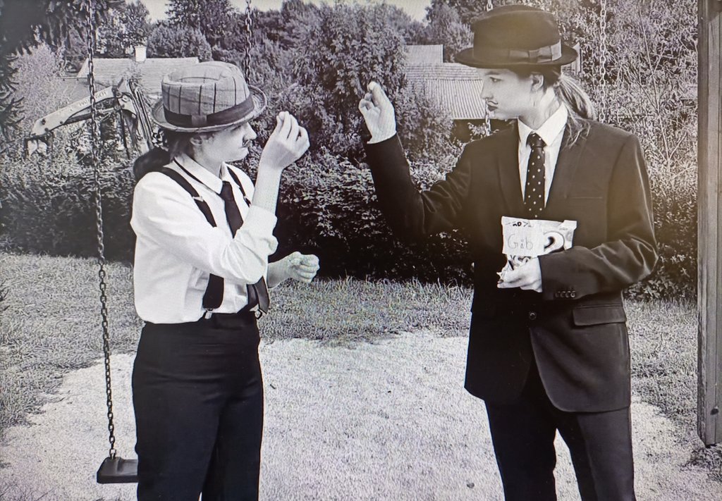 Amy, Emma und Dóra suchten sich in ihrem Beitrag zum Kreativwettbewerb Artikel 1 aus, welcher von Gleichberichtigung handelt – denn Gleichberechtigung zieht sich durch alle Artikel. Wenn diese gesichert ist, dann verfügt jede und jeder über Würde. Die Jugendlichen wollten den Klassenunterschied zwischen den Gesellschaftsschichten durch den Höhenunterschied der Schaukeln darstellen. Inspiriert wurden sie dabei von Charlie Chaplin, der ohne Worte, nur durch Mimik und Körpersprache, eine ganze Geschichte erzählen konnte. Zusätzlich kritisierte er den Kapitalismus, welcher auch in dem Film eine Rolle spielt, insofern er den fairen Umgang mit Menschen unterbindet.