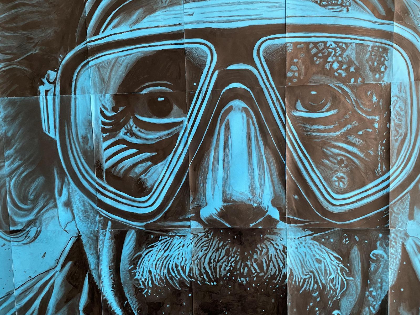 Inspiriert von Robert Longo, dessen Ausstellung die Kinder im Albertina Museum in Wien besuchten, sowie von dem italienischen Straßenkünstler Blub, fertigten die Kinder eine große Kunstinstallation zum Thema Globale Erwärmung an, die mit Kohle, Graphit und Indien-Ink gefertigt wurde. Künstliche Intelligenz wurde genutzt, um das Bild von Einstein in einem Stil zu erstellen, der Longos Hyperrealismus mit Blubs Unterwassermasken-Motiv kombinierte. Zwei Klassen von 15-jährigen Kunstschüler/innen verbrachten viele Stunden damit, jeweils 2 oder 3 Blätter zu erstellen, die später zu dem Kunstwerk zusammengefügt wurden.
