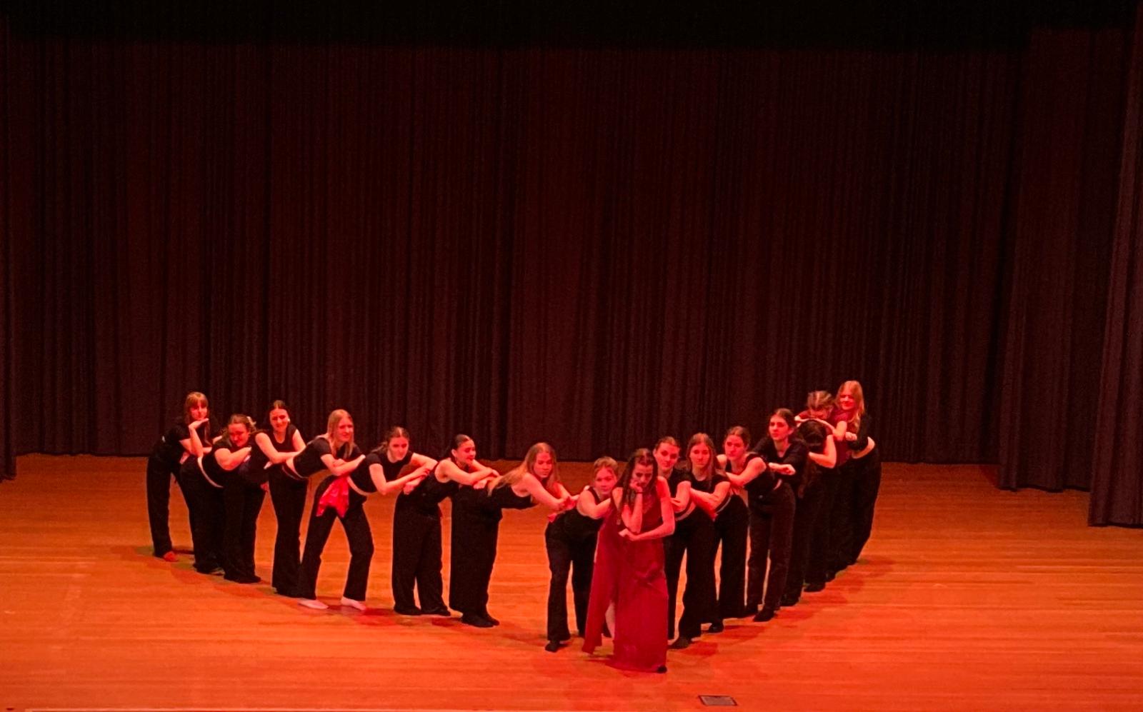 Das Tanztheaterstück "Krimidinner" unter dem Motto "Zwischen Licht und Dunkelheit – wo Schatten tanzen und Geschichten flüstern" thematisiert eine gescheiterte Beziehung im Mafia-Milieu als Metapher für den Kampf um Freiheit, Gerechtigkeit und Selbstbestimmung. Es zeigt, wie Hierarchien und Machtmissbrauch gesellschaftlichen Fortschritt behindern. Durch Tanz werden diese Konflikte sichtbar: Starre Bewegungen symbolisieren Unterdrückung, während fließende Choreografien den Wunsch nach Freiheit verkörpern.