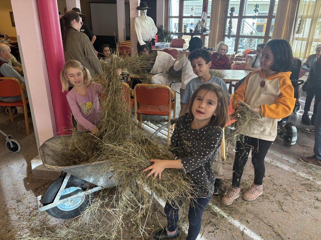 Seit Schulbeginn planten, bastelten und gestalteten Alt & Jung gemeinsam typische Kunstwerke aus Alltagsmaterialien, wie Klopapierrollen, Eierkartons oder Stoffresten zu den Fåsnåchtsgruppen. Auch die Gruppen selbst beteiligten sich stark am Kreativprojekt. Sie besuchten die Mitwirkenden und standen mit Rat und Tat zur Seite.