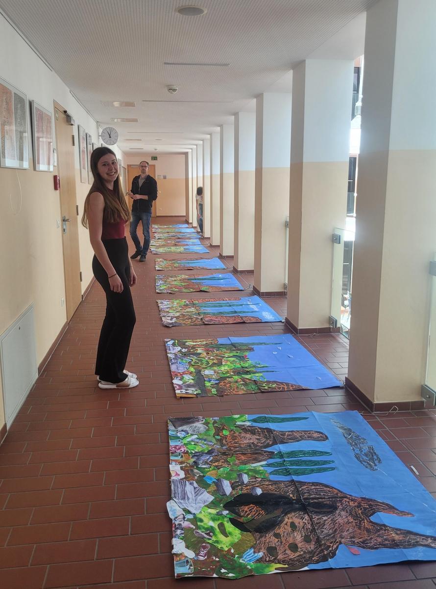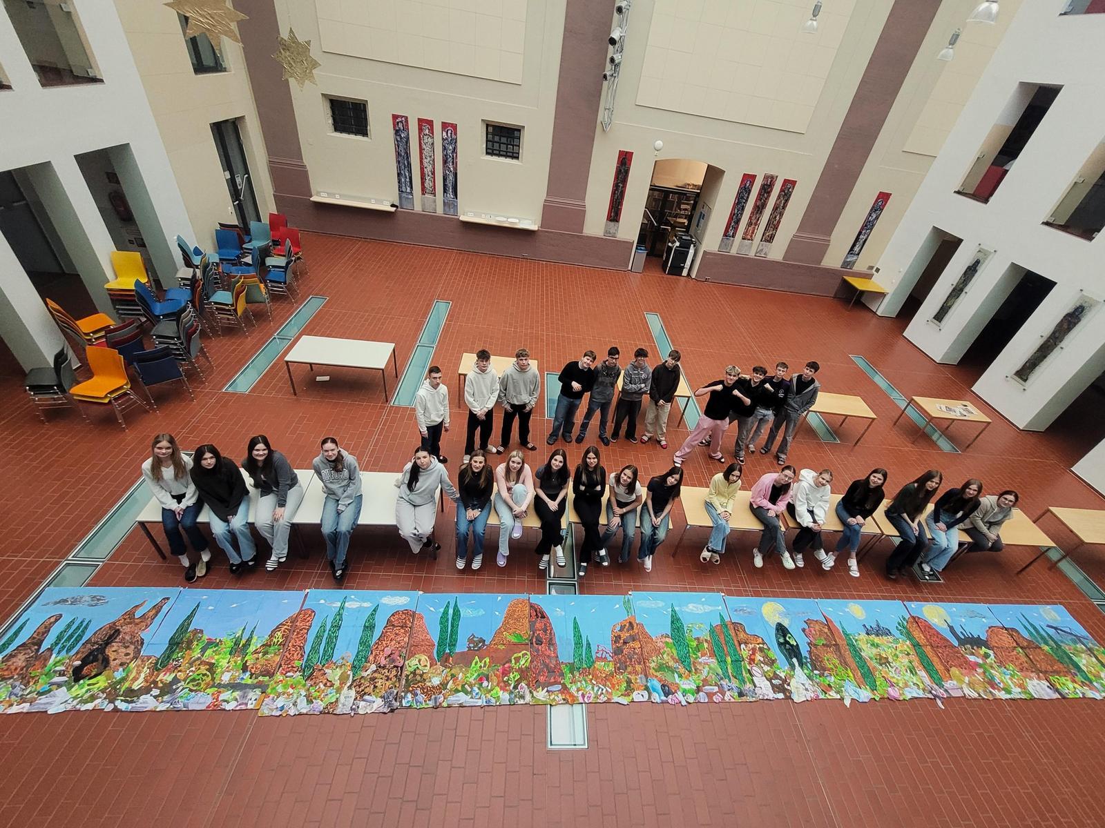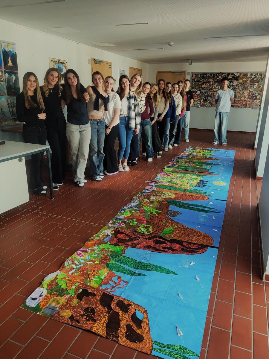 Die 5. Klassen starteten 2024/25 mit dem Projekt "Unsere (schöne) Natur": einem 12,6 Meter langen surrealistischen Landschaftsbild in Mischtechnik zum Thema Klima- und Naturschutz.