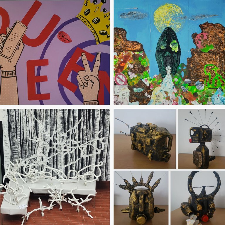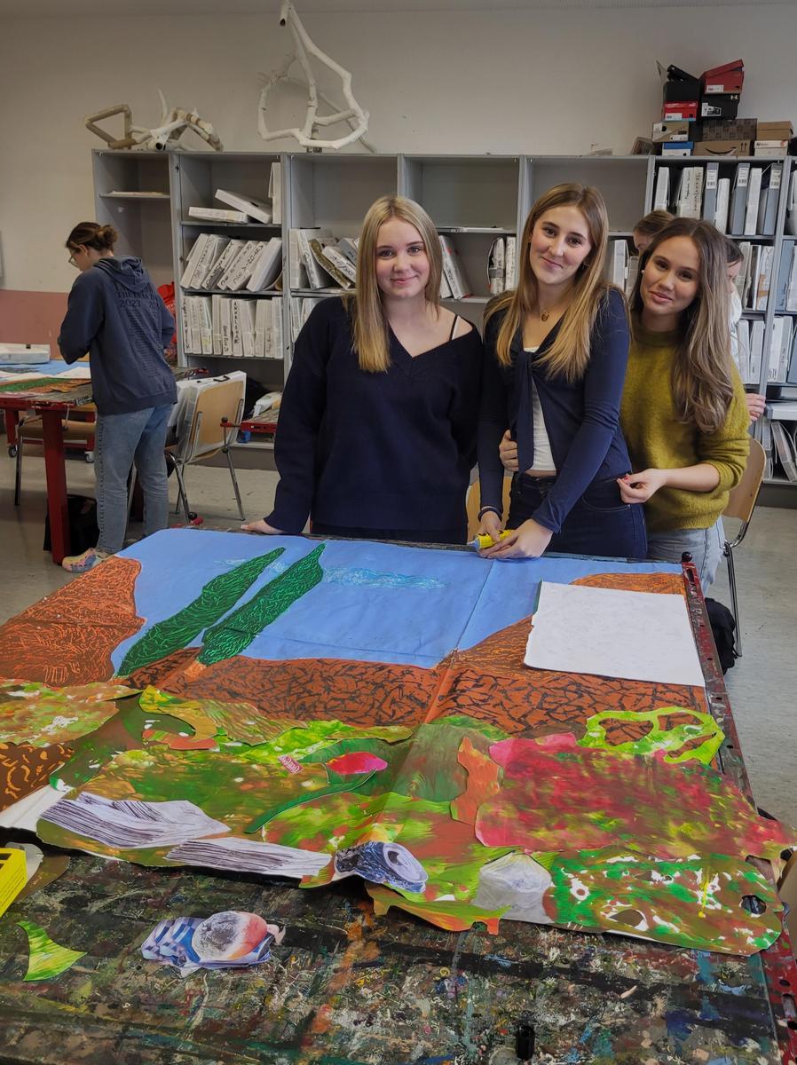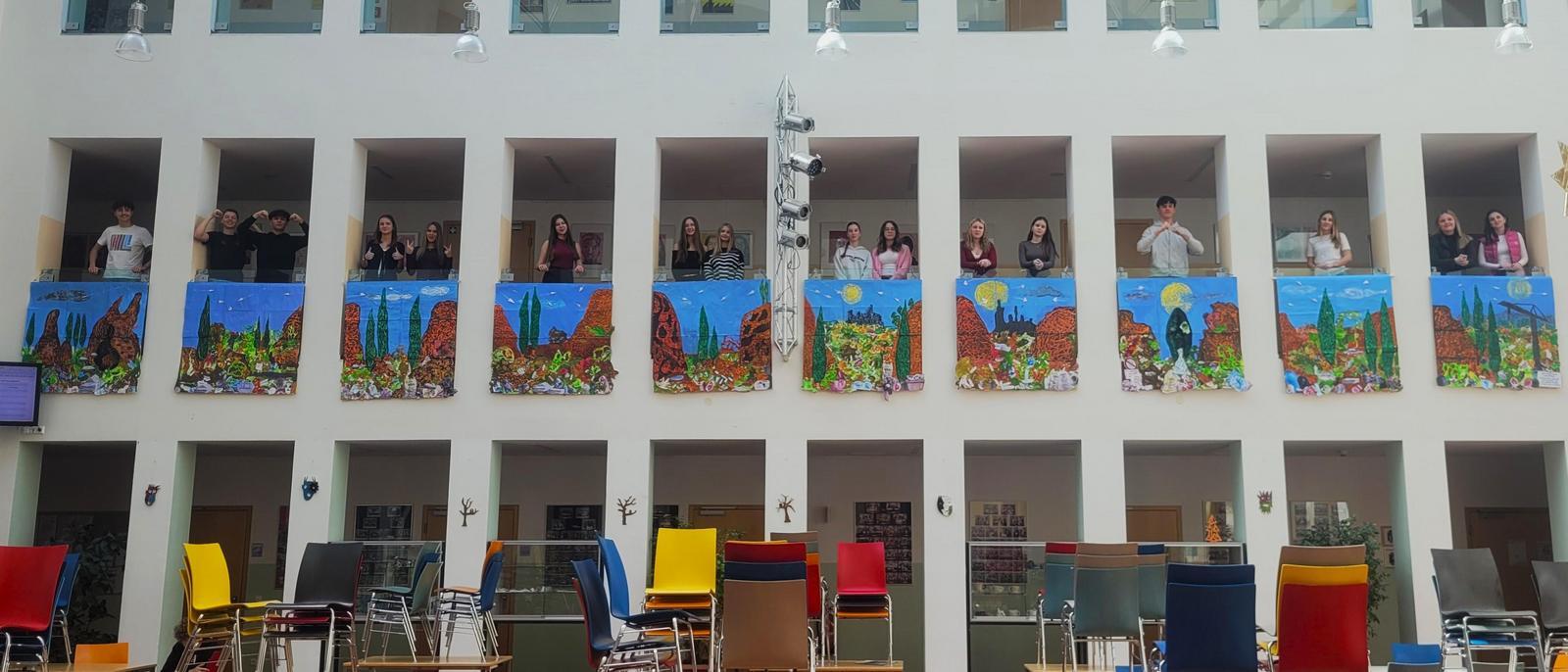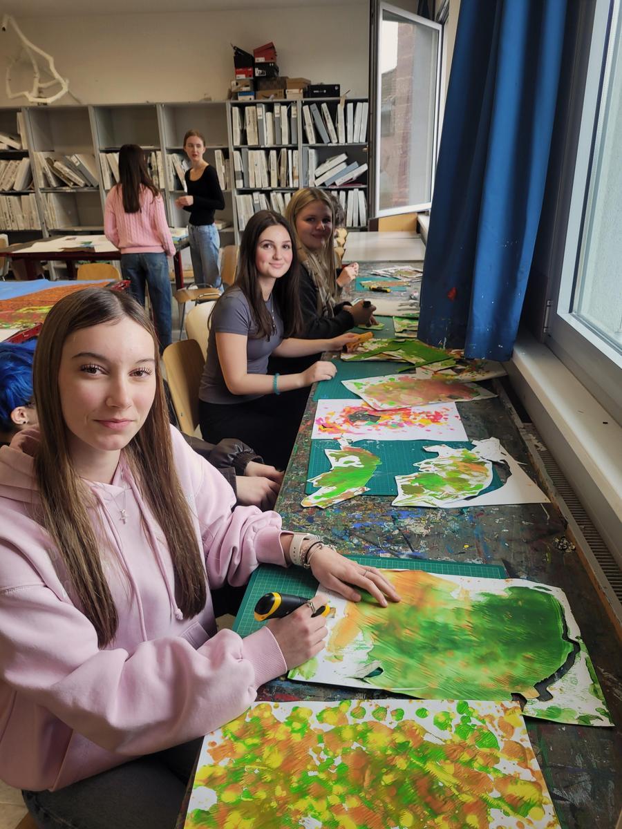 Die 5. Klassen starteten 2024/25 mit dem Projekt "Unsere (schöne) Natur": einem 12,6 Meter langen surrealistischen Landschaftsbild in Mischtechnik zum Thema Klima- und Naturschutz.