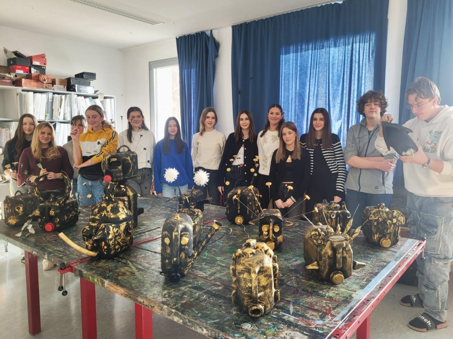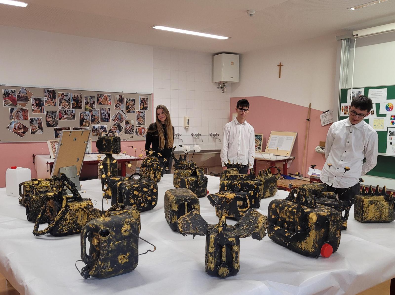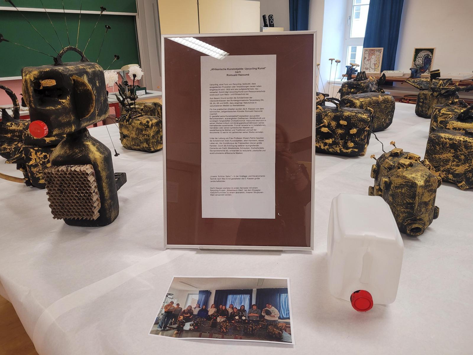 Die 6. Klassen wählten Upcycling-Kunst – inspiriert von Picasso und Romuald Hazoumé – und gestalteten aus alten Kanistern ausdrucksstarke Objekte, die an afrikanische Masken erinnern. Damit setzten sie ein kreatives Zeichen für Nachhaltigkeit.