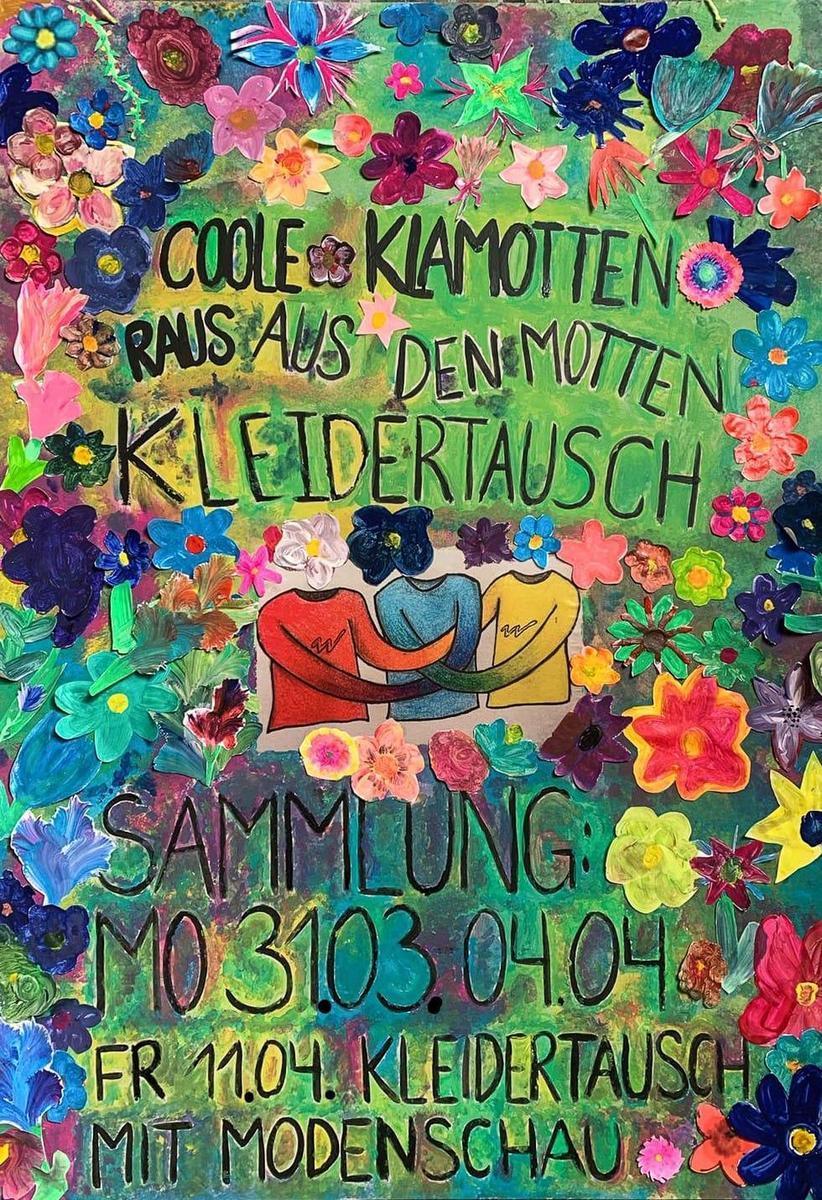 Zunächst haben die Kinder und Jugendlichen aus allen Klassenstufen ein kreatives Plakat gestaltet, für das eigens ein Logo geschaffen wurde. Das Logo symbolisiert erstens Verbundenheit über Grenzen hinweg und zweitens Nachhaltigkeit. Die Plakatgestaltung wurde von Schülerinnen der 9. Klasse im Rahmen des Medienunterrichts mitgefilmt und ein Reel für die Social-Media-Kanäle der Waldorfschule Klagenfurt zur Bewerbung der Veranstaltung am 11.4.2025 erstellt. Gemeinsam haben Schülerinnen aus der 6.-9. Klasse einen Tanz inklusive Modeschau vorbereitet, der direkt am Frühlingsfest Werbung für die Kleidertauschbörse machen sollte.